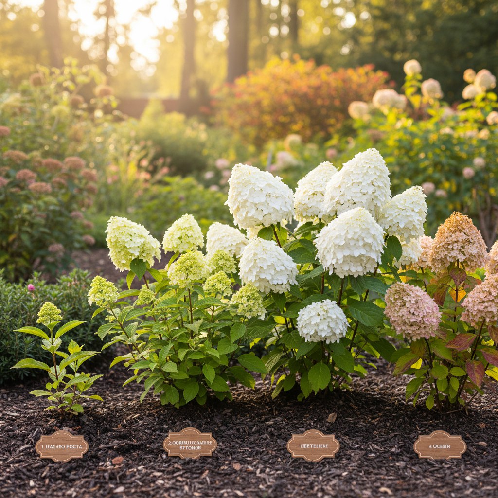 Флагманский сорт гортензии поражает своим цветением. При правильной обрезке и хорошем уходе крупные соцветия появляются на кусте уже на четвертый год жизни. Соцветия меняют окраску с течением времени: