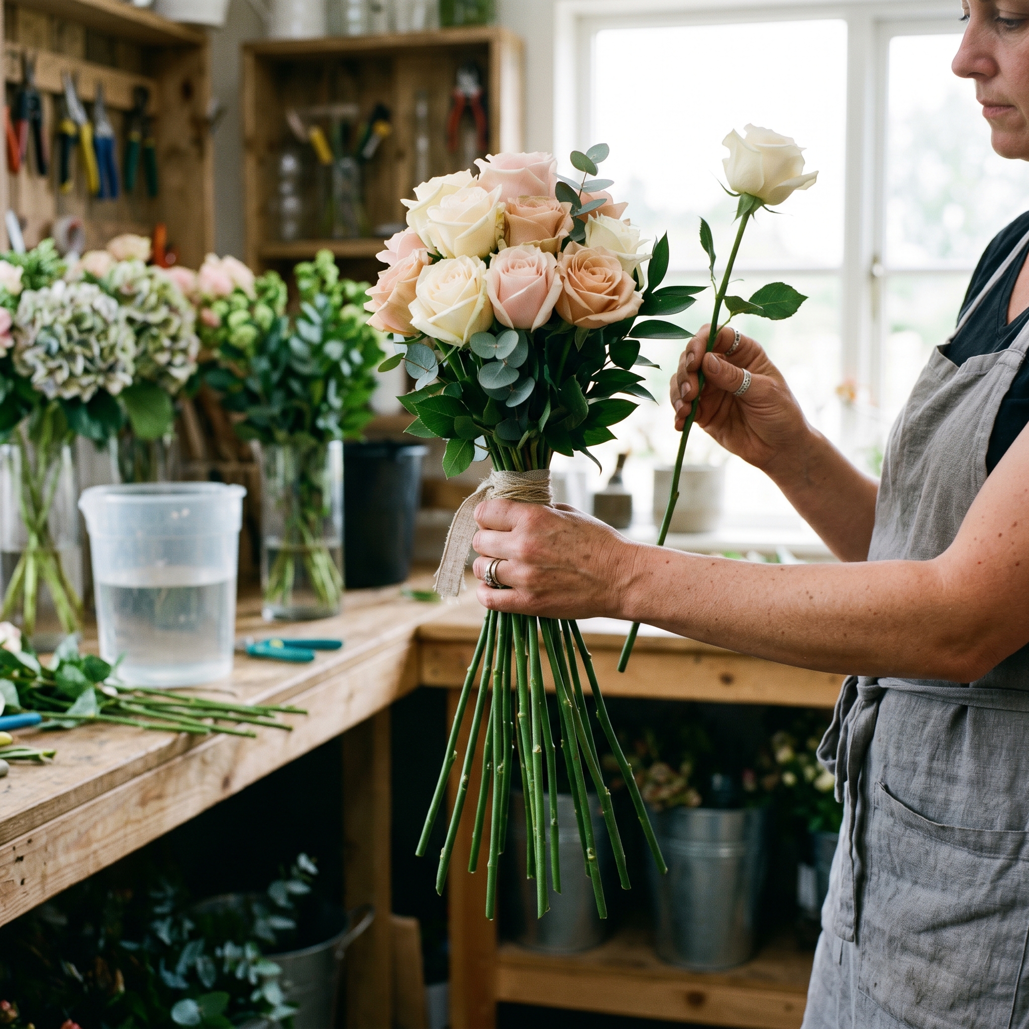 При этом, если важен быстрый безошибочный результат, обратитесь к флористу: он подберет цветы, учтет сочетания, аккуратно оформит композицию — это особенно удобно для важного повода.