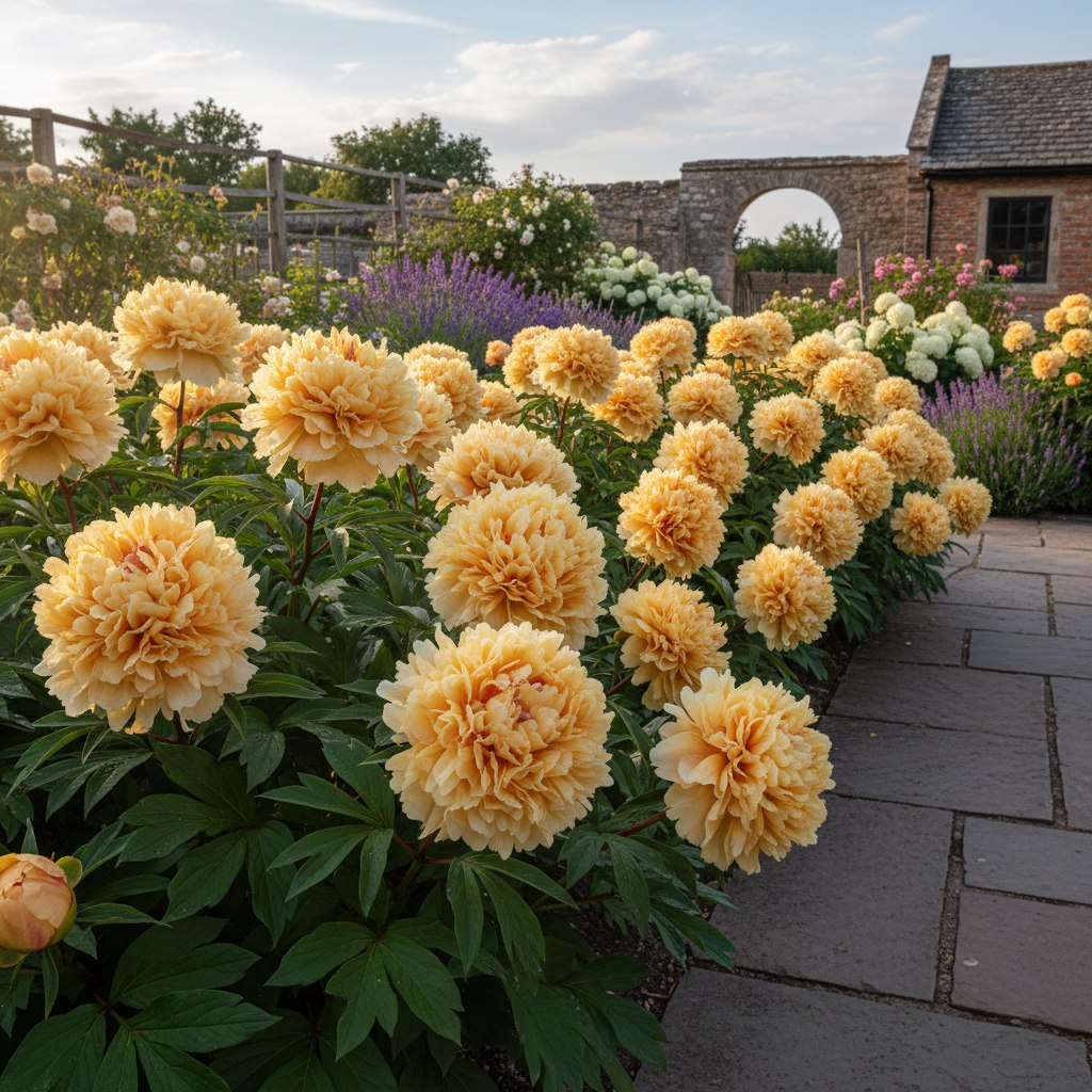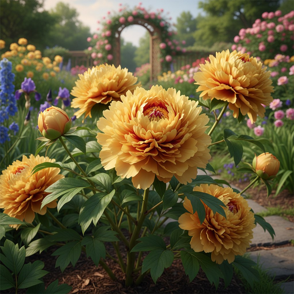 Пион Кинко выведен еще в 1907 году. Его аутентичное название Souvenir de Maxime Cornu. Интересно то, что второе имя Kinkaku было дано растению в честь храма буддистов “Золотой Павильон”, который находится в японском Киото. Получил это название цветок благодаря своей уникальной окраске. Действительно, цветет пион Кинко по-настоящему незабываемо: