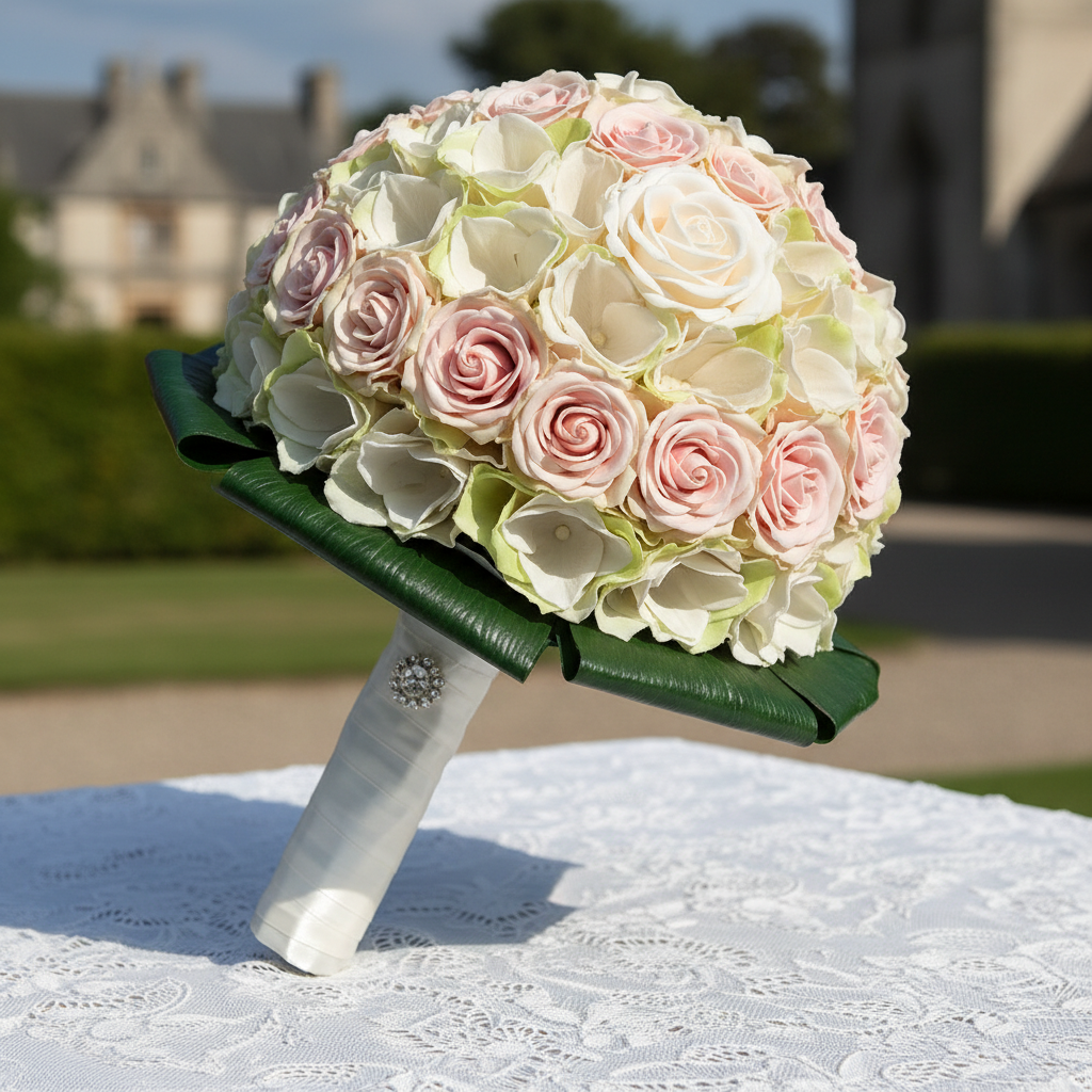 Круглый букет. Это классика, которая всегда в теме. Он ровненький и классный, подходит тем, кто любит традиционный стиль.
