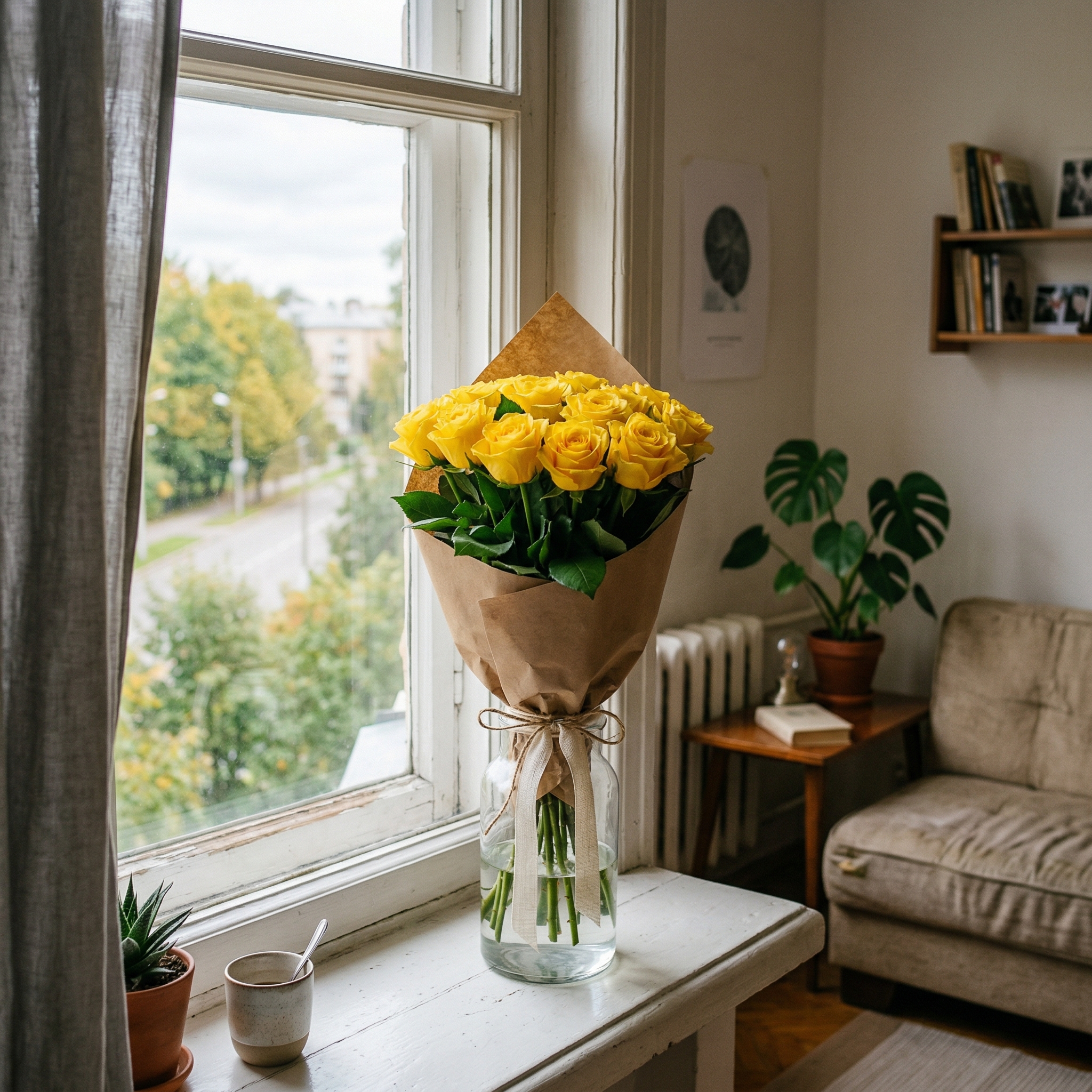 Яркие композиции прекрасно смотрятся в интерьере, добавляя света в темные углы комнаты и создавая уют. Это универсальный способ выразить заботу и теплоту, не ограничиваясь рамками классических «любовных» цветов.