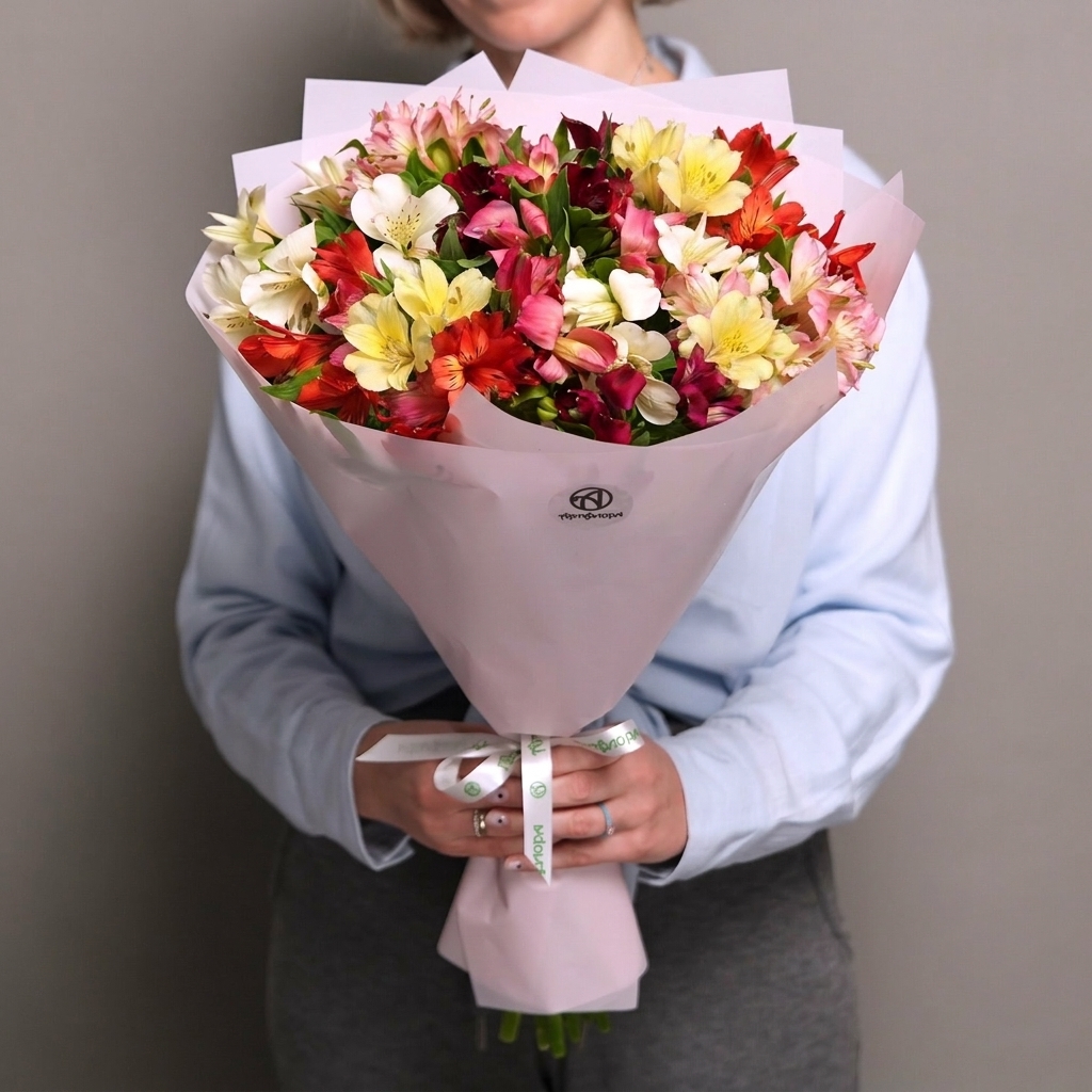 Букет из 11 альстромерий микс в корейской светлой упаковке