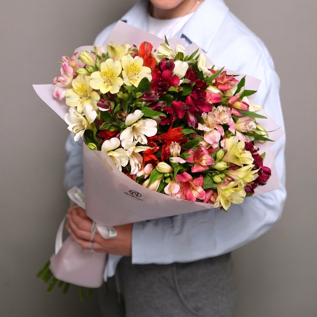 Букет из 15 альстромерий микс в корейской светлой упаковке