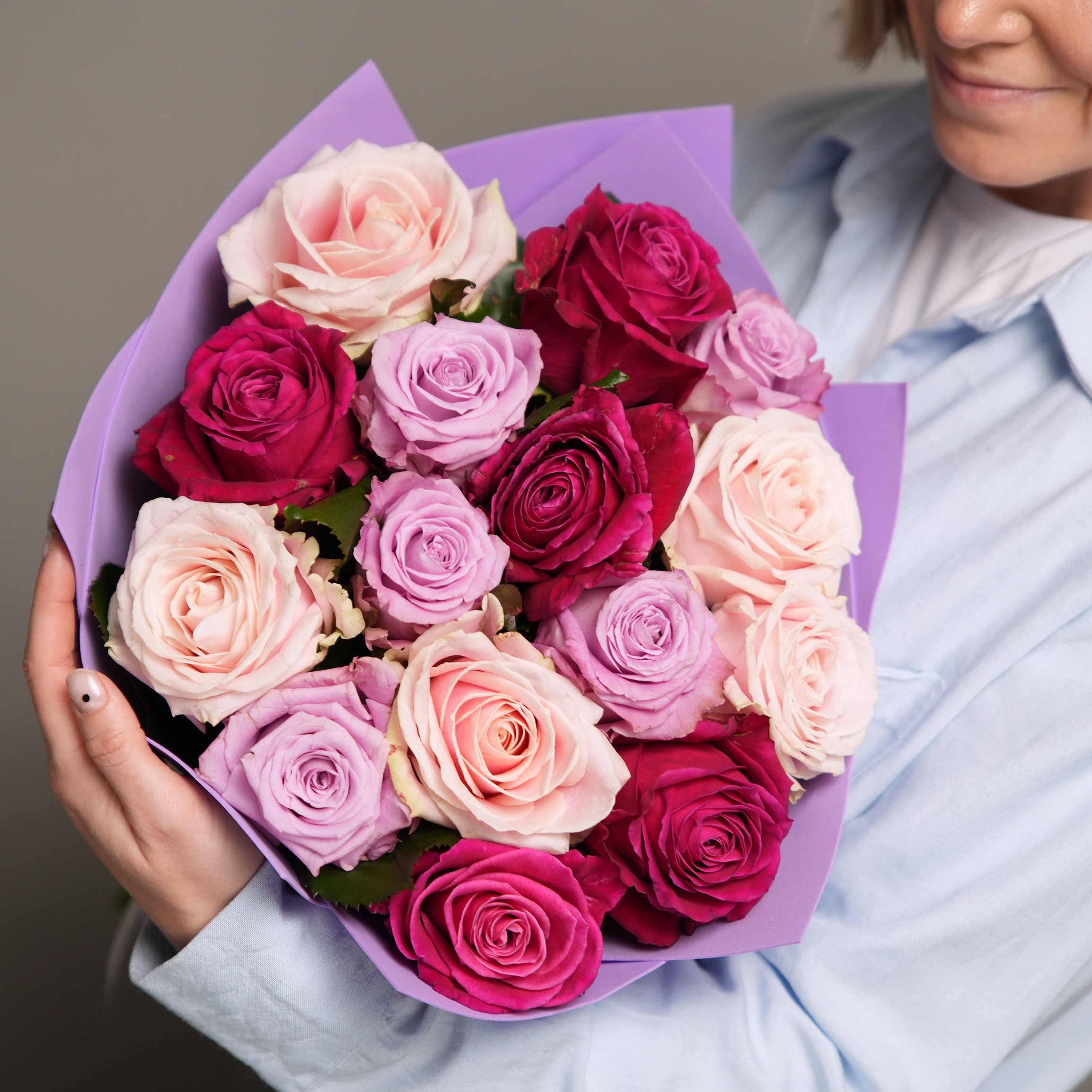 Букет из 15 роз малиновый микс 50 см (Россия) в фоамиране
