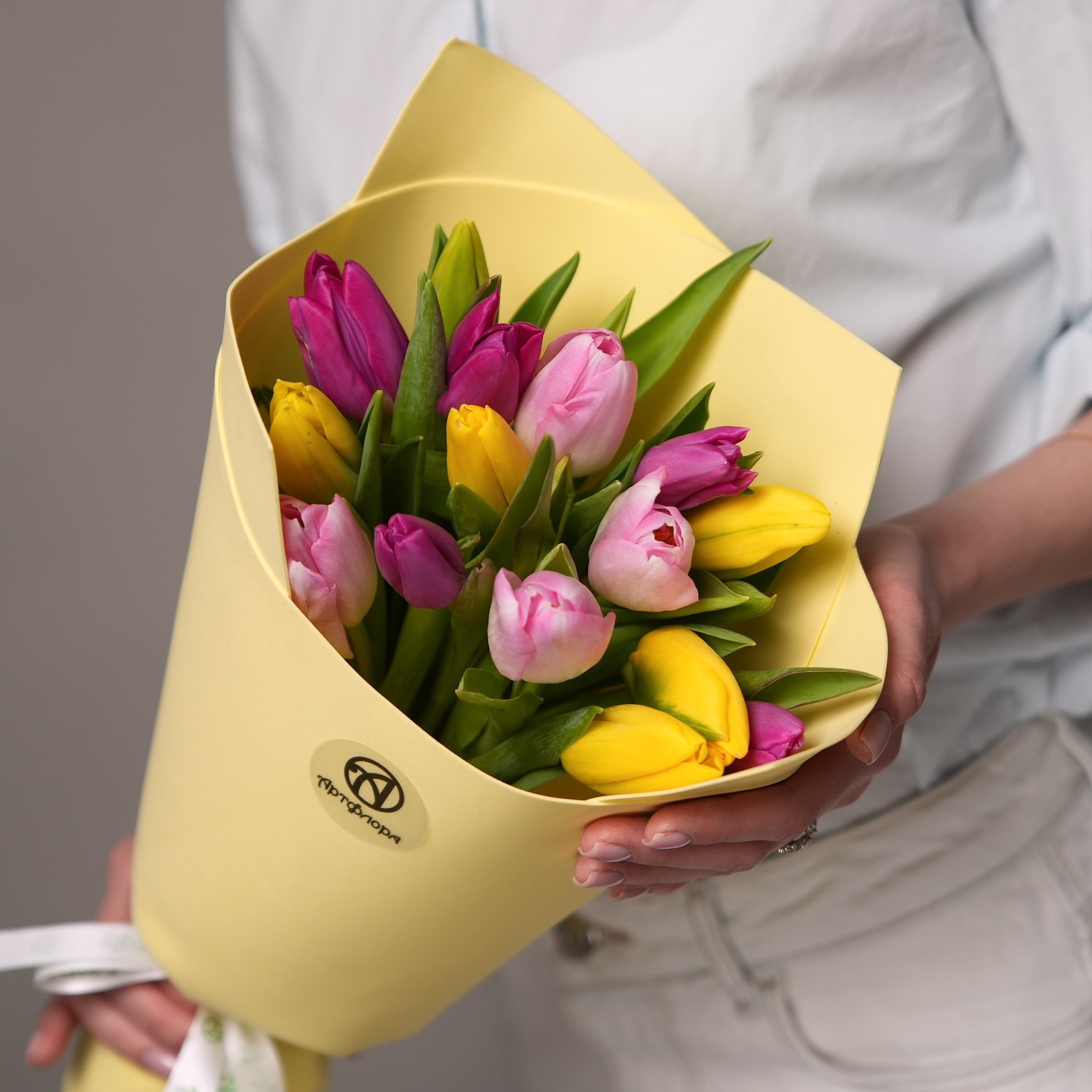 Букет из 15 тюльпанов микс яркий (Голландия) в фоамиране