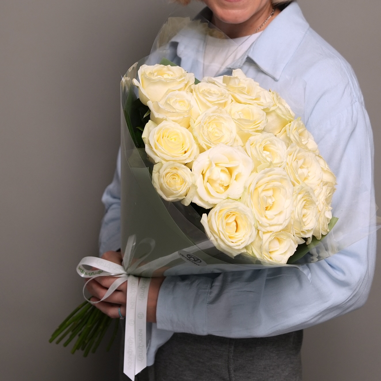 Букет из 19 белых роз 50 см (Россия) в двойной корейской упаковке