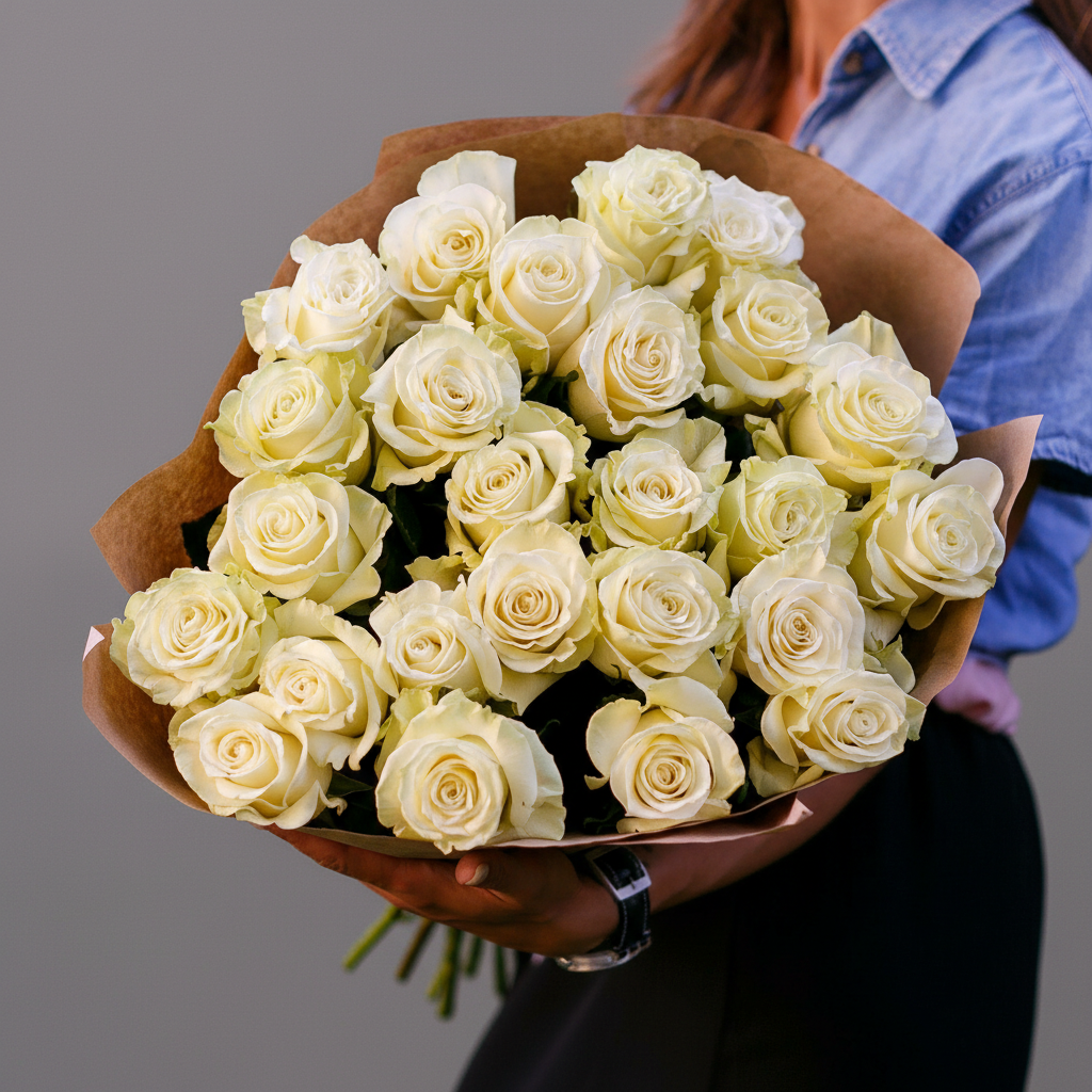 Не упустите шанс сделать день особенным! Заказывайте букет из 25 белых роз 70 см Эквадор с доставкой по Санкт-Петербургу и Ленинградской области. Дарите радость себе и своим близким!