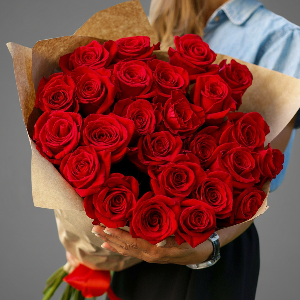 Букет из 25 красных роз 70 см (Эквадор)