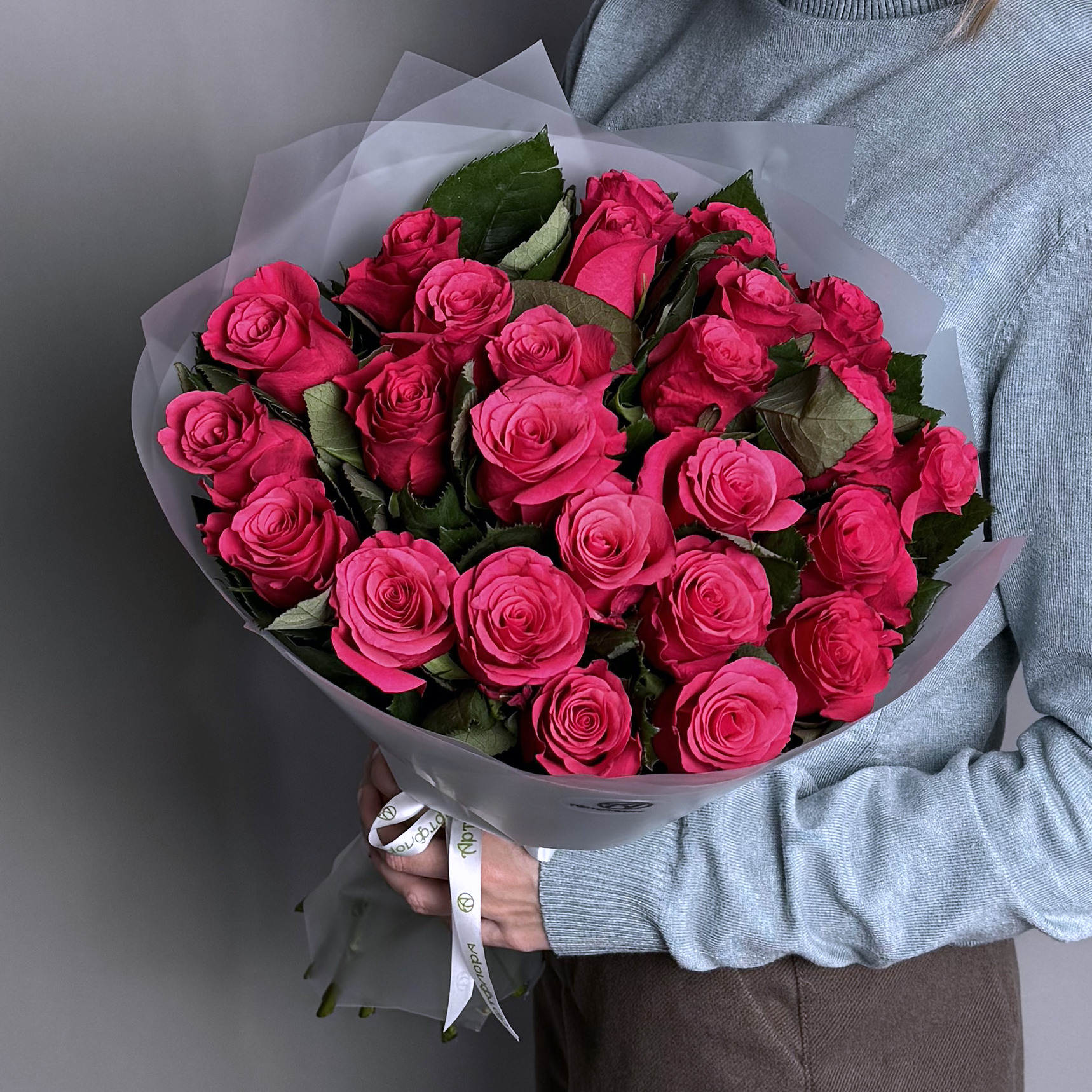 Букет из 25 роз Кения "Такази" (50 см) в матовой упаковке