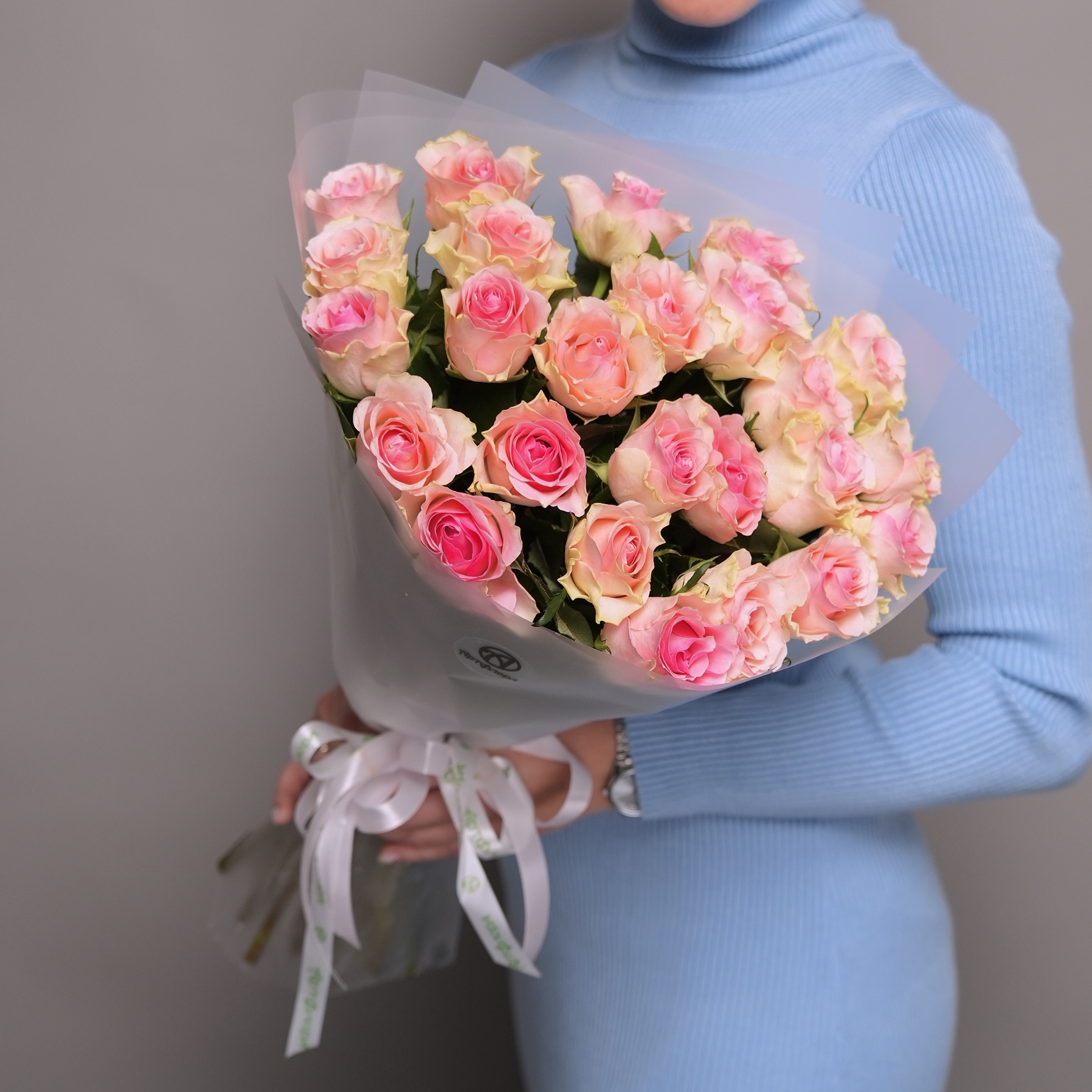 Букет из 25 роз — прекрасный выбор, когда хочется сделать красивый и запоминающийся подарок без излишней сложности. Нежный светло-розовый оттенок символизирует искреннюю симпатию, восхищение и теплые чувства. Букет получается пышным, гармоничным и выглядит как продуманный и душевный жест внимания.