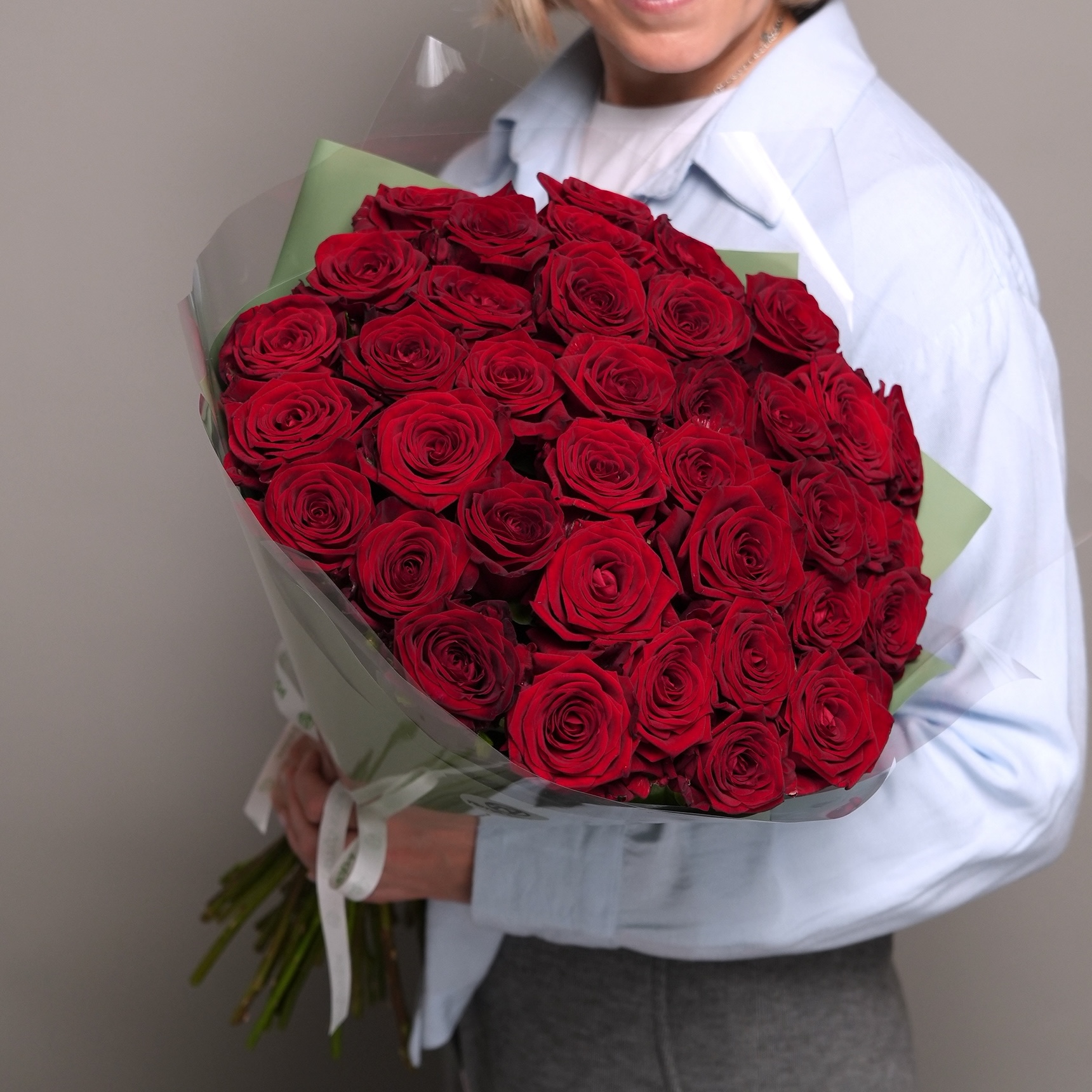 Букет из 39 красных роз 50 см (Россия) в двойной корейской упаковке