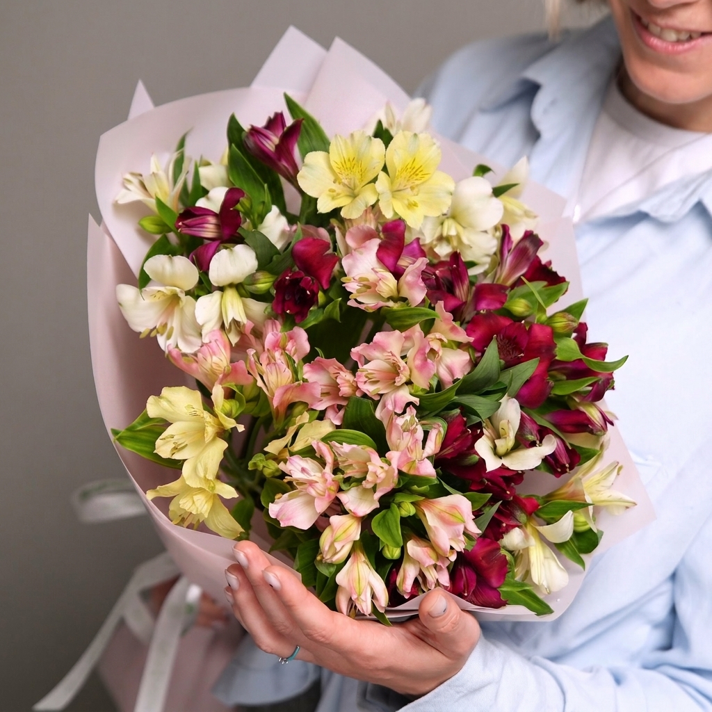 Букет из 9 альстромерий микс в корейской светлой упаковке