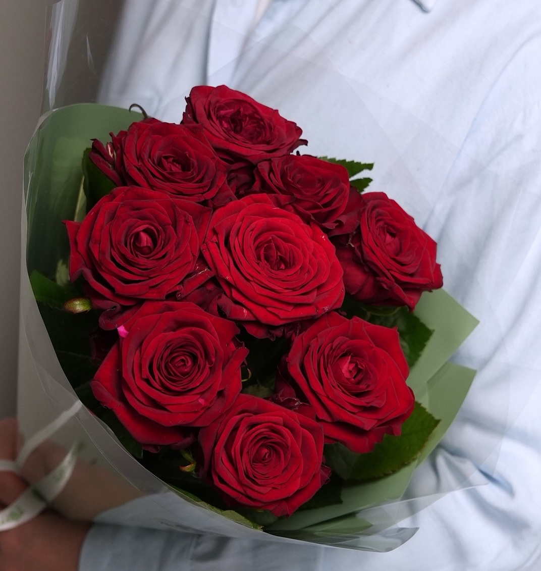 Букет из 9 красных роз 50 см (Россия) в двойной корейской упаковке