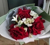 Букет из красных французских роз и альстромерии - S в фоамиране