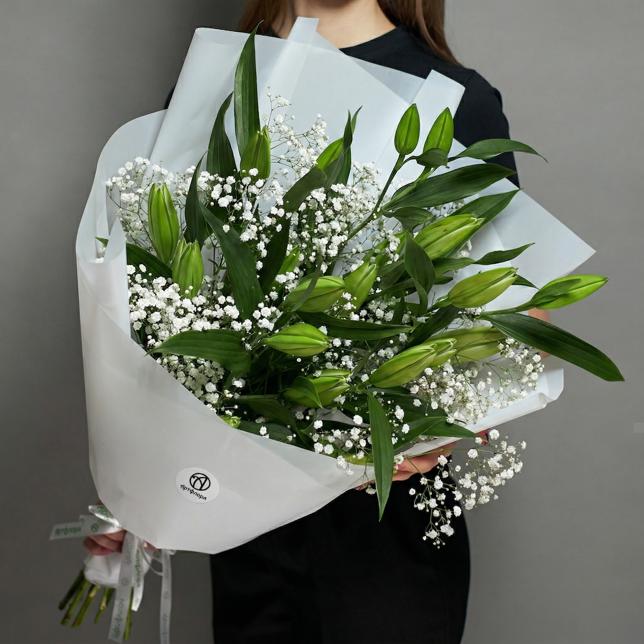 Лилии все в бутонах имейте в виду когда заказываете.
