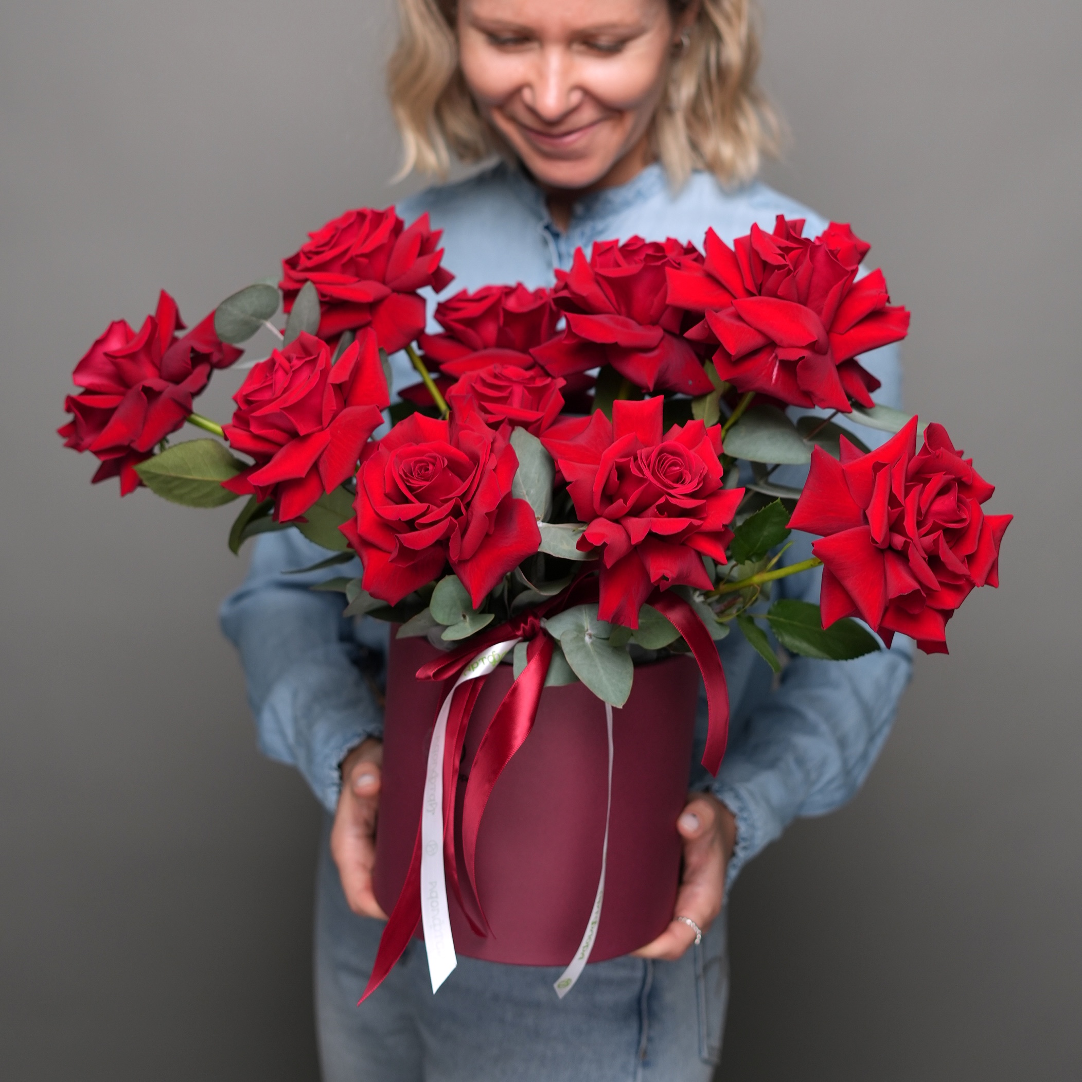 Шляпная коробка с красными французскими розами