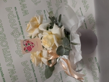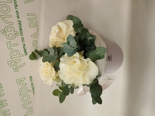 Шляпная коробка с кремовыми французскими розами - M