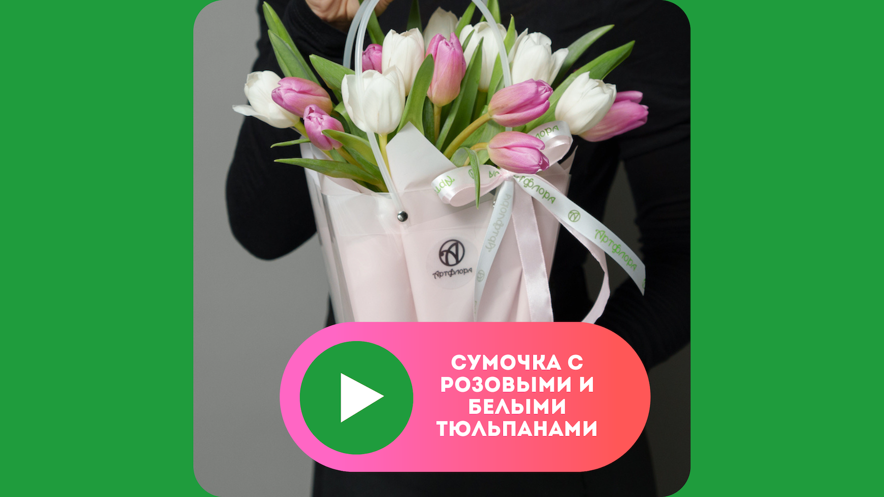 Сумочка с розовыми и белыми тюльпанами