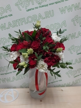 В свадебный набор с декором из кустовых роз, лизиантусов и роз Кения входит: