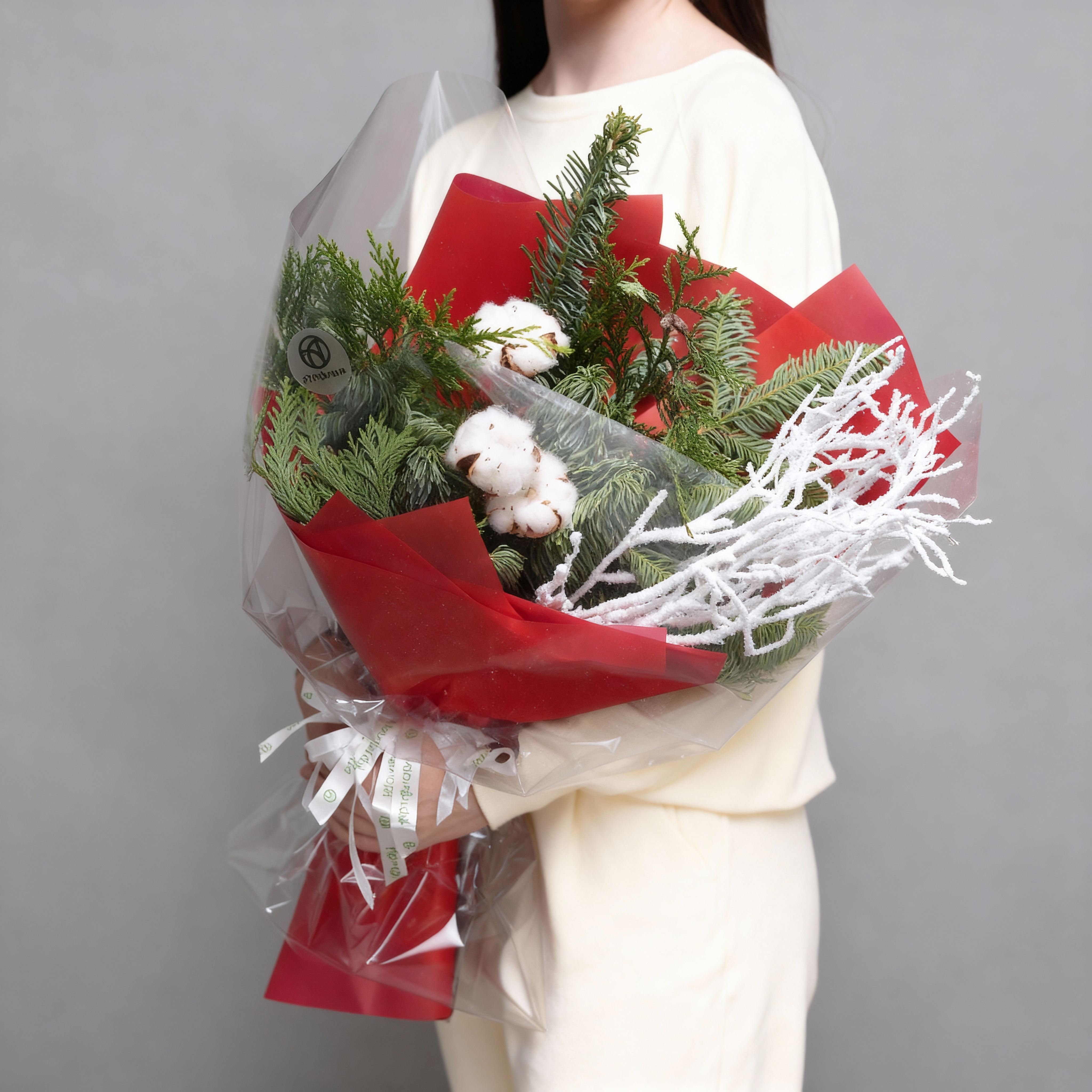 Зимний букет хвойный микс с хаклберри в красной упаковке