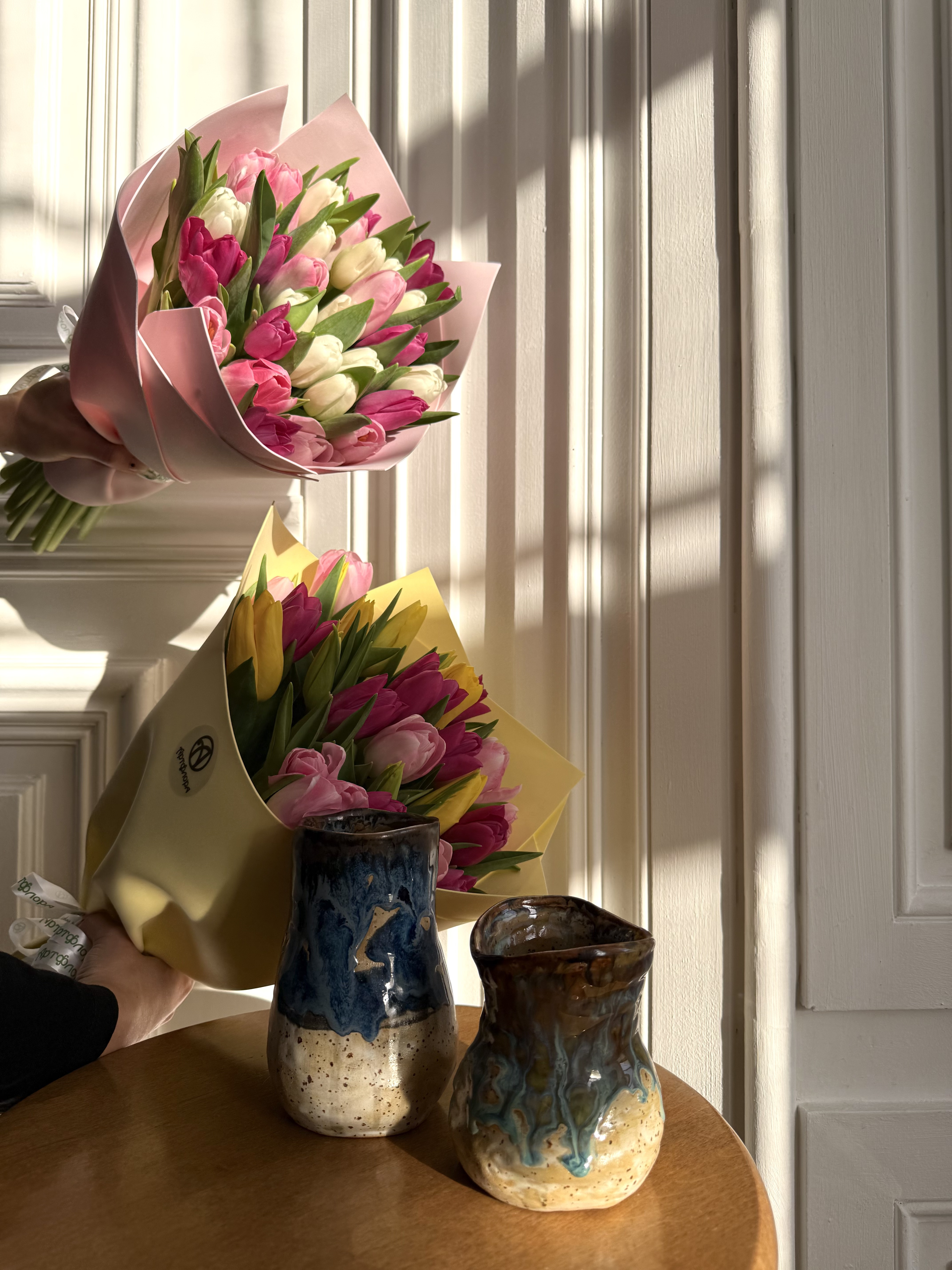 В этом году вдохновением для создания праздничных композиций послужили работы мастеров из керамической мастерской благотворительной организации «Перспективы». Уникальные вазы, созданные руками подопечных, стали основой для образа нового весеннего букета. Флористы АртФлора наполнили их нежными тюльпанами, чтобы каждая композиция хранила в себе тепло человеческих сердец. Покупая такой букет, вы дарите радость своим близким и одновременно помогаете мамам и бабушкам особенных детей сохранять веру в будущее и душевные силы.