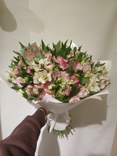 Нравится абсолютно всё! Уже не первый раз заказываю букеты. Доставка во время. Упаковка красивая. Очень понравилось что курьер вручает красивый букет без транспортировочной бумаги. Цветы свежие.
