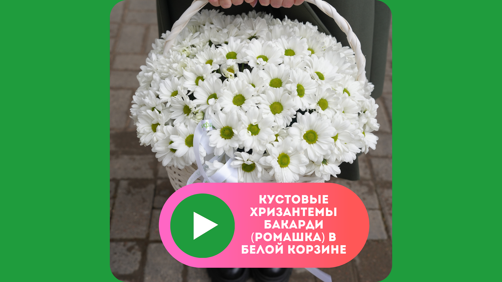 Недавно у моей подруги был день рождения, и я хотел ей сделать подарок. Заказал ей корзину с кустовыми хризантемами Бакарди (ромашка) в белой корзине. Когда я ей его вручил, она была в полном восторге! Корзина была такая яркая, красивая, праздничная.Подруга сразу же поставила ее вазу и весь день любовалась ей. Отдельно хочу отметить работу курьера. Он был очень вежливым и пунктуальным. Спасибо магазину за такой чудесный подарок! Теперь я буду всем рекомендовать вас своим друзьям и знакомым.