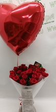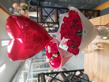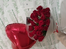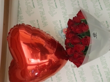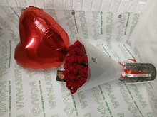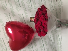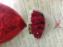 Набор размер М+ с букетом 25 красных роз Кения (50 см) в корейской матовой упаковке