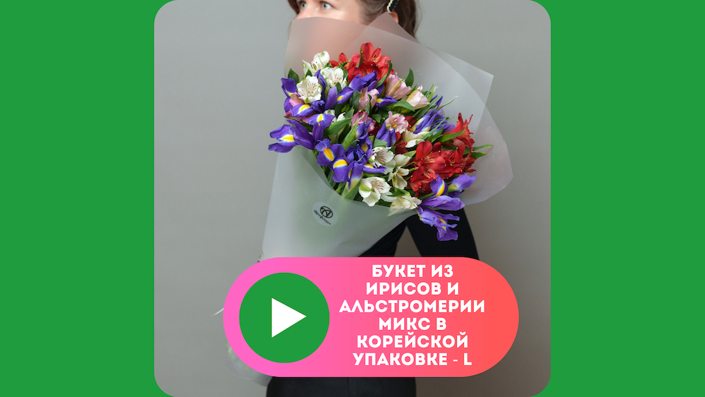 Букет из ирисов и альстромерии микс в корейской упаковке - L