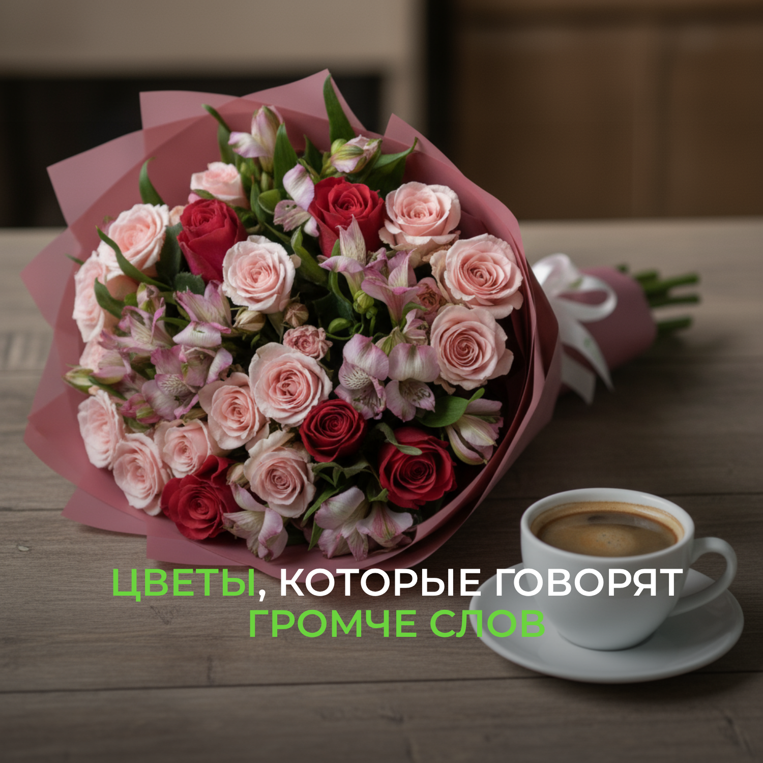 Этот букет стал настоящим украшением моего торжества! Розы Кения добавили особую изысканность, а кустовые розы и альстромерии прекрасно дополнили композицию. Размер букета был идеальным, а его аромат заполнил всю комнату. Спасибо за такой прекрасный подарок!