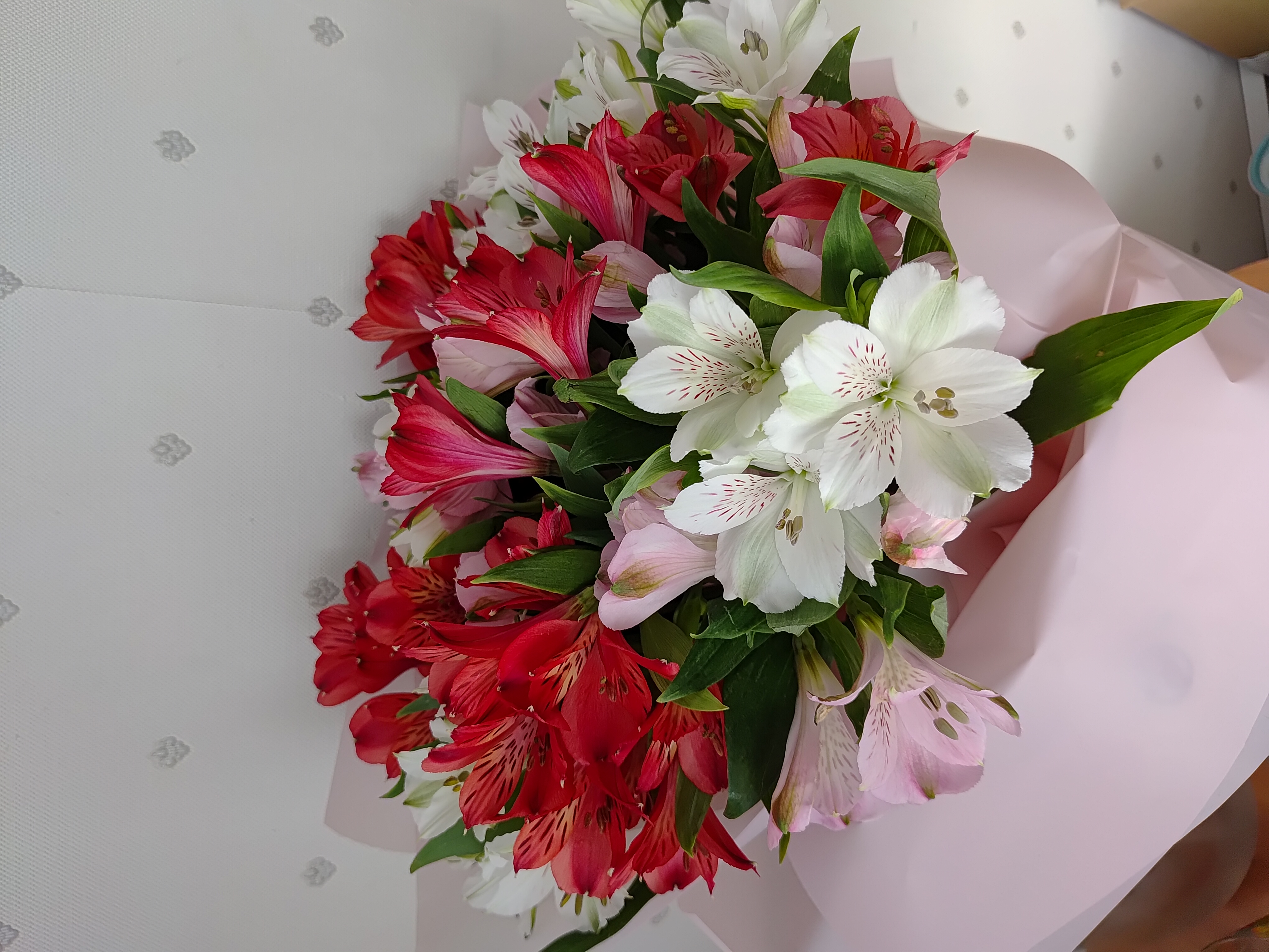 Муж подарил красивый букет из астромерии. Красивые свежие цветы,стоят уже 7ой день и радуют!