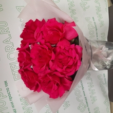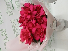 Букет из 7 малиновых французских роз в корейской упаковке