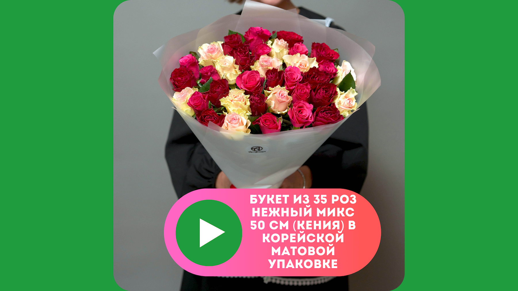 Букет из 35 роз нежный микс 50 см (Кения) в корейской матовой упаковке